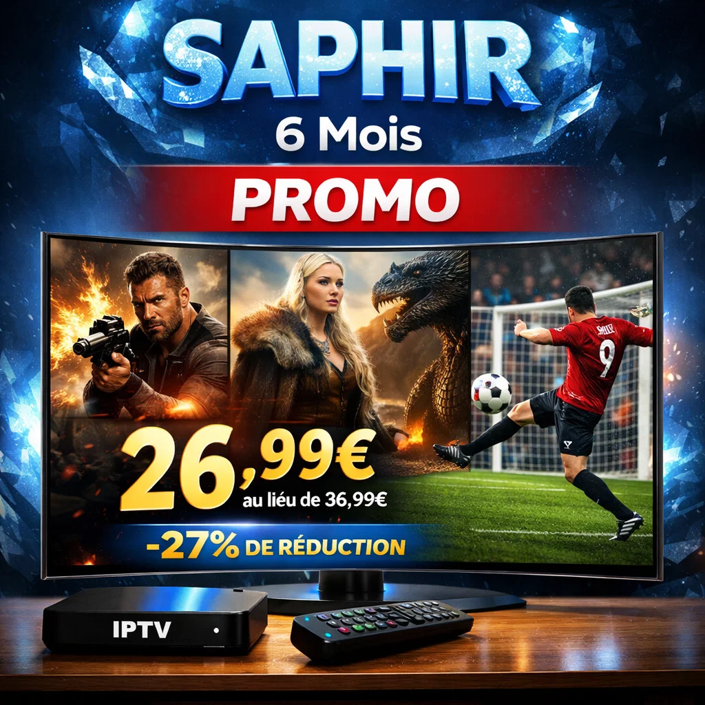 Saphir IPTV, également recherché sous SaphirIptv et Saphire IPTV, propose une formule 6 mois idéale pour profiter d’une expérience IPTV stable, fluide et compatible sur tous vos appareils.